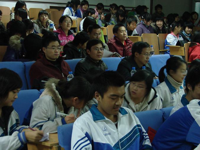 2008年12月10日晚7时,师大附中一号楼一楼半教室内座无虚席,灯火通明。在舒缓的背景音乐下,高二年级“墨香斋杯”感悟心灵语文学习交流会在这里拉开了帷幕。