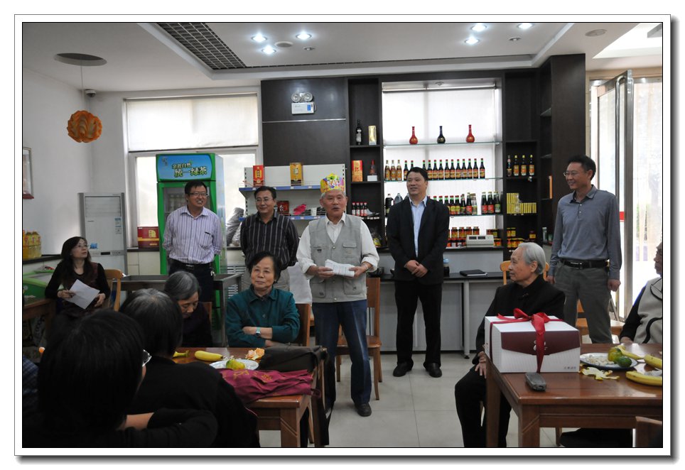 接下来,闫书记、赵校长、杨校长为今年年满八十岁的老寿星欧有洪主任送上了献花和生日蛋糕,并为与会的老同志发放了慰问金。老同志们和到会的领导们会议回顾往事、畅谈未来,座谈会在的温馨和谐的气氛中圆满结束。