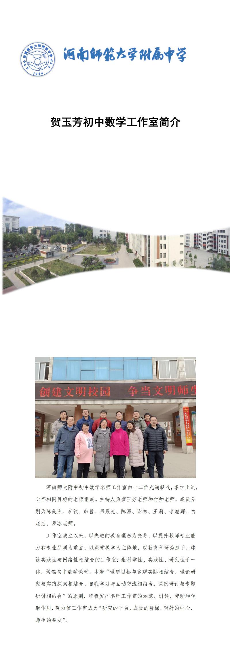 贺玉芳初中数学名师工作室简介