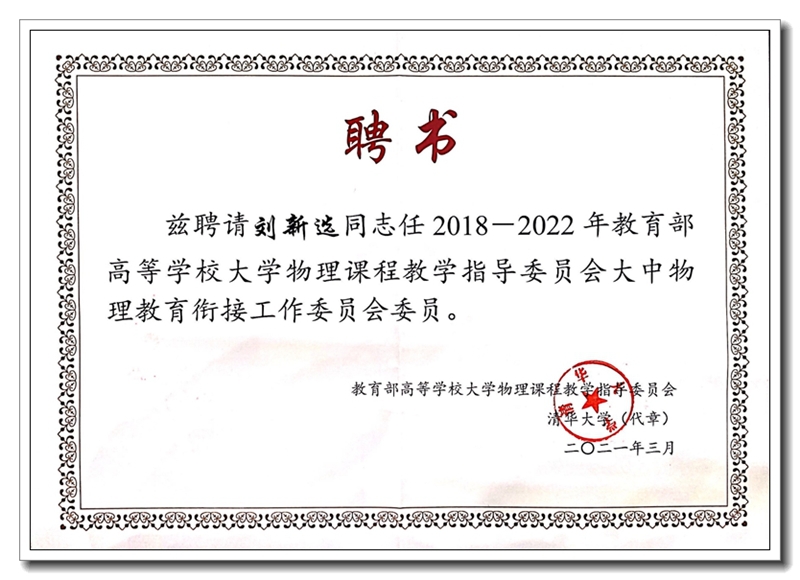 2021年,入选教育部大学物理教学指导委员会大中物理衔接专委、河南省第十一批优秀专家。