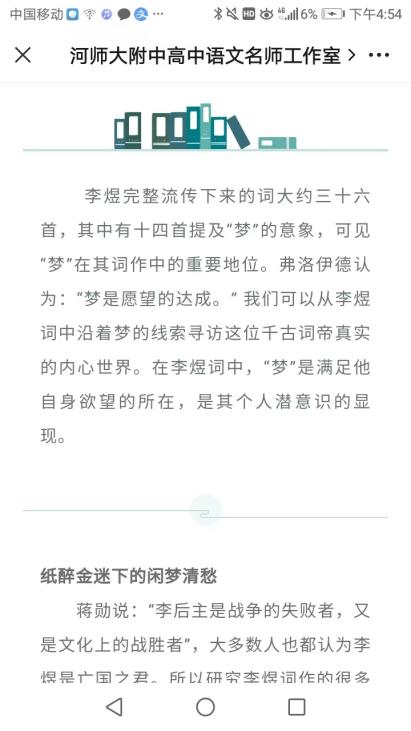 1. 从工作室成立之初,全体成员在张军老师、陈维佳老师的指导下认真研读书籍、定期分享读书笔记、读书心得。从《郢城再无少年臣,吴市迎来复仇士》到《苏东坡的黄州突围》,魏欣、安军伟老师为我们再现烈丈夫、真男儿的成长与蜕变;从《黯然销魂者,唯别而已》到《似淡实美,舍媚还真情》王晓丽、曹驰老师带我们领略唐风宋韵的浪漫与雅致。从《面对“无可奈何”,亦可“安之若命”》到《华灯初上,自有黑暗》杨美霞、李春燕老师带领我们穿越历史的云烟,在品味小说世界里的多彩人生。从《阅读教学应确定恰切的教学内容》到《读高中作文哲学思辨与议论文写作二十课》王丹丹、陈伟老师为我们提供具体指导学生阅读和写作的路径。从《寻找生活中的“澄明之境”》到《闲读<停云>》张世超、吴甜甜老师共读陶渊明探索淡泊人生的意义。
