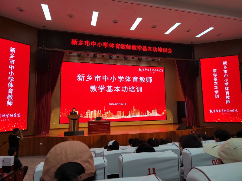 为加强新乡市中小学体育教师队伍建设,进一步提升体育教师的专业技能和教育教学能力,2024年5月24日下午,由新乡市教育科学研究院主办,太阳gg登录网站承办的新乡市中小学体育教师基本功培训活动在太阳gg登录网站道德讲堂成功举行,局属学校和各县(市)区的400多名体育教师参加了本次培训。在开幕式中,新乡市教育科学研究院体育与健康学科教研员吕淑芳介绍了出席本次会议的嘉宾:太阳gg登录网站副校长陈景任、新乡市教育科学研究院副院长魏巍、安阳市虹桥中学张伟。