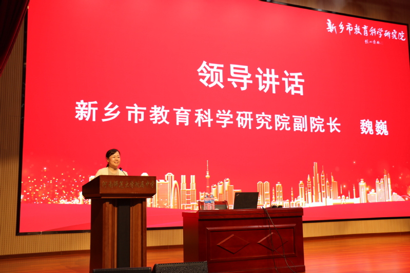 接下来,新乡市教育科学研究院魏巍院长讲话,魏院长说到本次活动是一次体育教师之间进行交流的好机会,并希望老师们能够认真听讲,学有所得。