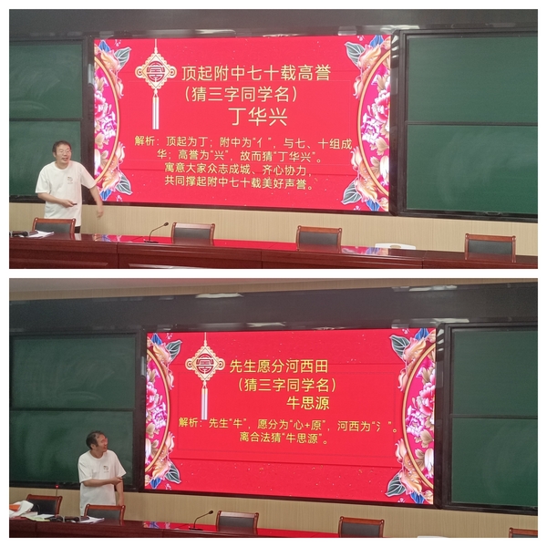 灯谜,作为中国传统文化的重要组成部分,不仅富有趣味性,还蕴含丰富的知识和智慧。为了让国际部学生更好了解中国文字,传承中华文化,617日下午,国际部特别邀请河南省灯谜协会副会长路传昆老师开讲,带领国际部师生一起探索灯谜奥秘,感受汉字魅力。