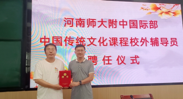 讲座开始前,国际部副主任周睿对此次活动做了简单介绍,并路传昆老师颁发聘书,聘任路传昆老师为国际部中国传统文化课程校外辅导员。