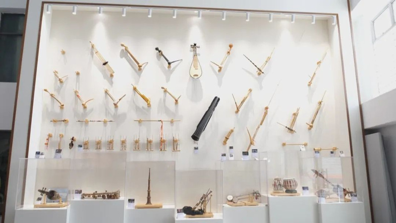 少数民族乐器对研究民族文化的渊源与交融有着深远的意义,云南师范大学音乐舞蹈学院依托杨琛团队采录的少数民族乐器及各界捐赠,利用学院公共空间精心打造了“中国——南亚东南亚国家非遗音乐舞蹈教育资源数字化陈列馆”,展出600余件少数民族乐器。每件乐器旁独具匠心地设计了特色卡片,展示制作人详情,以彰显对民间艺人的敬意。作为国内首家融合西南与南亚东南亚特色乐器的展陈馆,它为学生提供了直观接触乐器的机会,促进了学生音乐文化素养提升和学院学科发展。