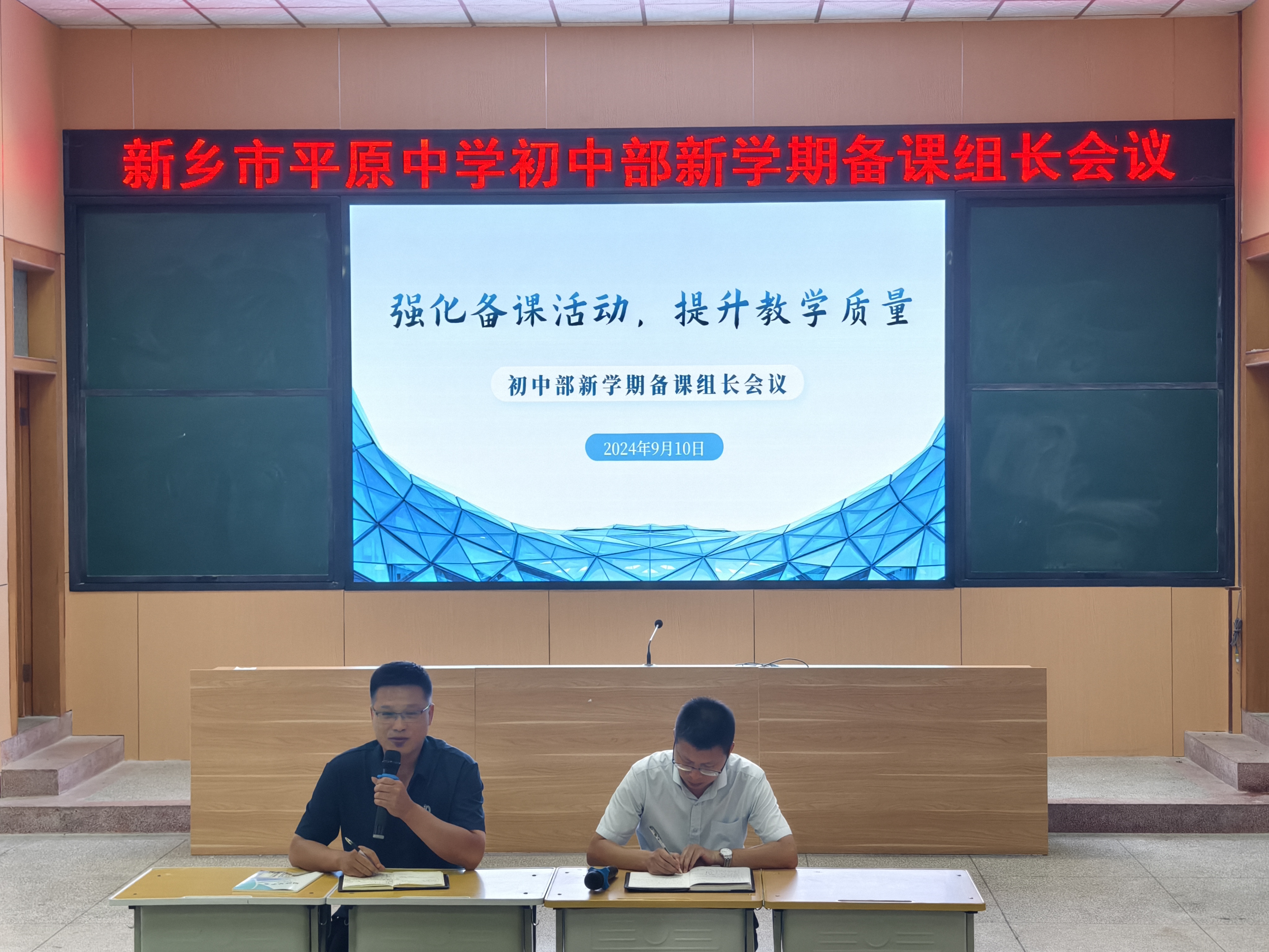 潜教细研,并行致远。为强化备课组长的责任意识,进一步推进新学期年级备课组的工作,9月10日下午,平原中学初中部召开了新学期全体备课组长会议。初中部主任周晋阳、副主任刘晨曦、年级主任、全体备课组长参加了本次会议。