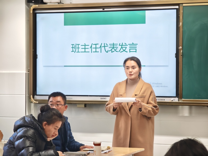 随后,年级副主任柳欢欢作为班主任代表进行发言,与大家分享了自己的班级管理心得。她指出班主任工作“勤”字当先,要做到勤盯班、勤沟通、勤反思。勤盯班是班主任工作中的一项重要“法宝”。它需要我们付出时间与精力,更需要我们倾注耐心与爱心。勤沟通,不仅是与学生沟通,更要与家长沟通,也要与任课老师沟通。只有这样才能随时掌握班级最新动态,随时调整管理办法。关于勤反思,柳欢欢以自己记班级日记的习惯为例,向大家说明制定详细工作计划的重要作用,指出勤反思是提升班级管理水平的重要路径。她与大家共勉:班主任既要有“狮子般的威严”,又要有“菩萨般的慈悲”,老师们受益匪浅。