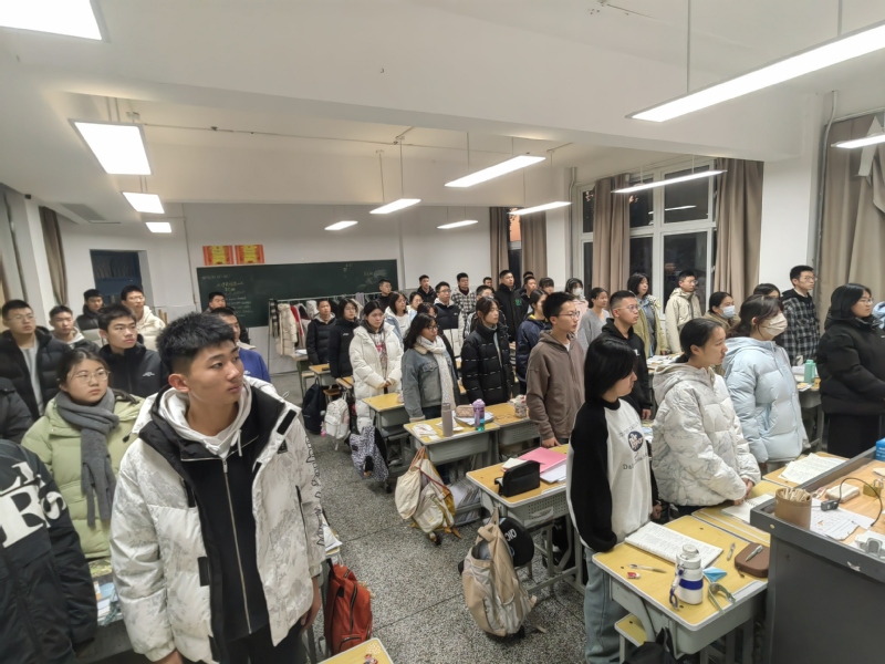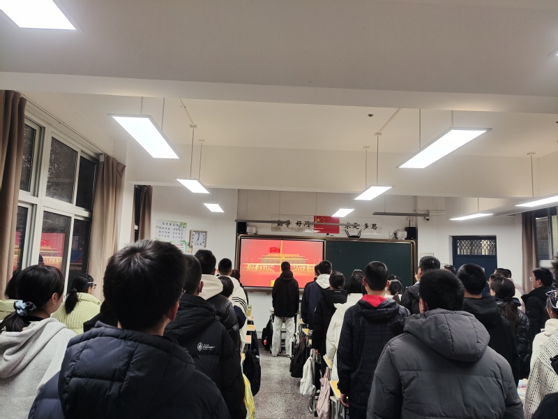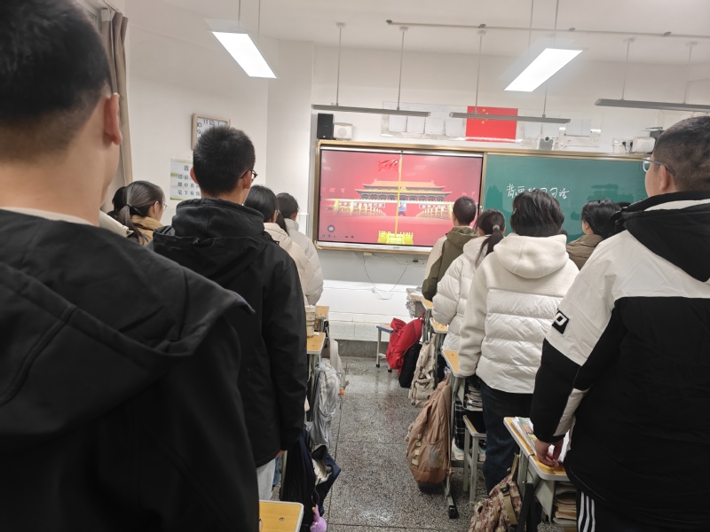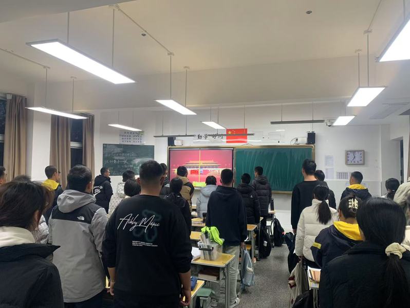 当国歌响起,同学们全体起立,面向屏幕中徐徐升起的国旗行注目礼。虽然没有广阔的操场和飘扬的国旗,但教室内的升旗仪式,充满别样的庄严与敬意。在这个特殊的场景中,同学们更加专注地聆听国歌,心中的敬意丝毫未减。这一刻,大家对祖国的热爱和对国旗的尊重,在小小的教室里凝聚。尽管场地有限,但升旗仪式的意义却不受影响。它提醒着我们,无论身处何地,都要时刻保持对祖国的热爱和敬意。